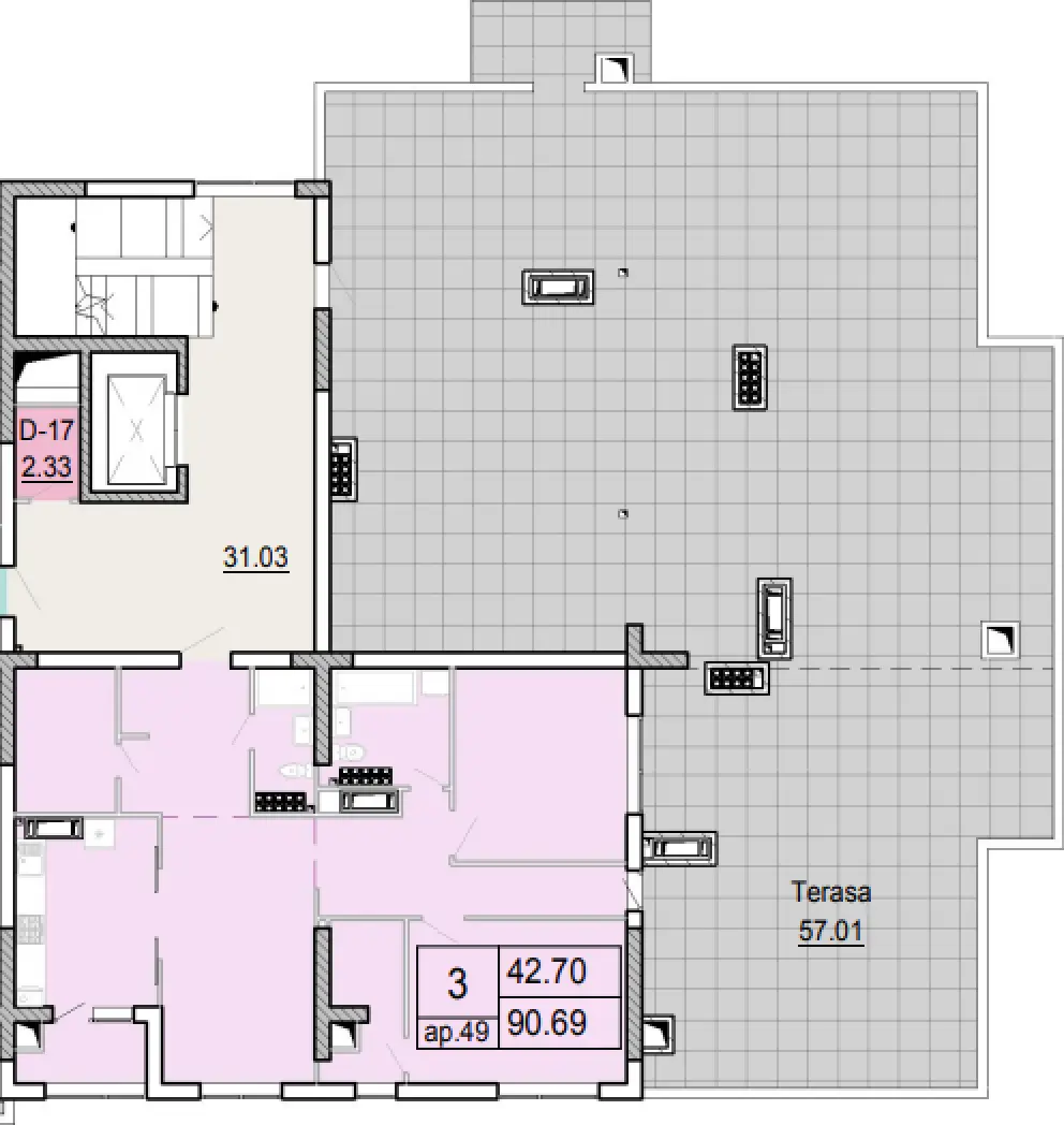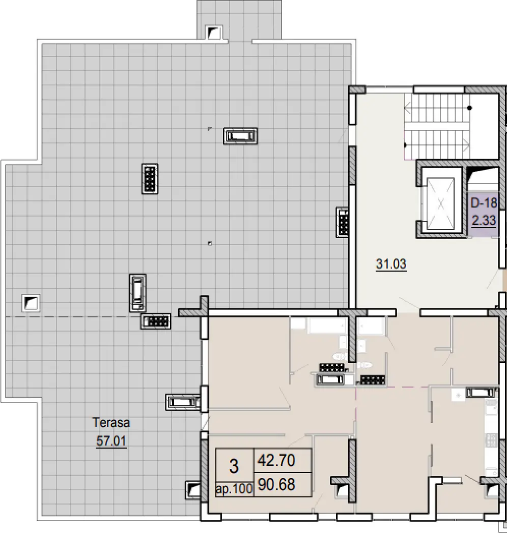 90.68 m², 57.01 m2 terasa